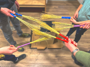 Aus Stroh wurden anschließend ein Paar Drum-Brushes (Schlagzeugbesen) gebastelt.